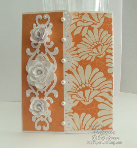 Here is a closer view of the pretty roses and the gorgeous decorative element. I added some White Opal Liquid Pearls and some flat back pearls and done. It was a really easy card to complete...and easy is good!!!!